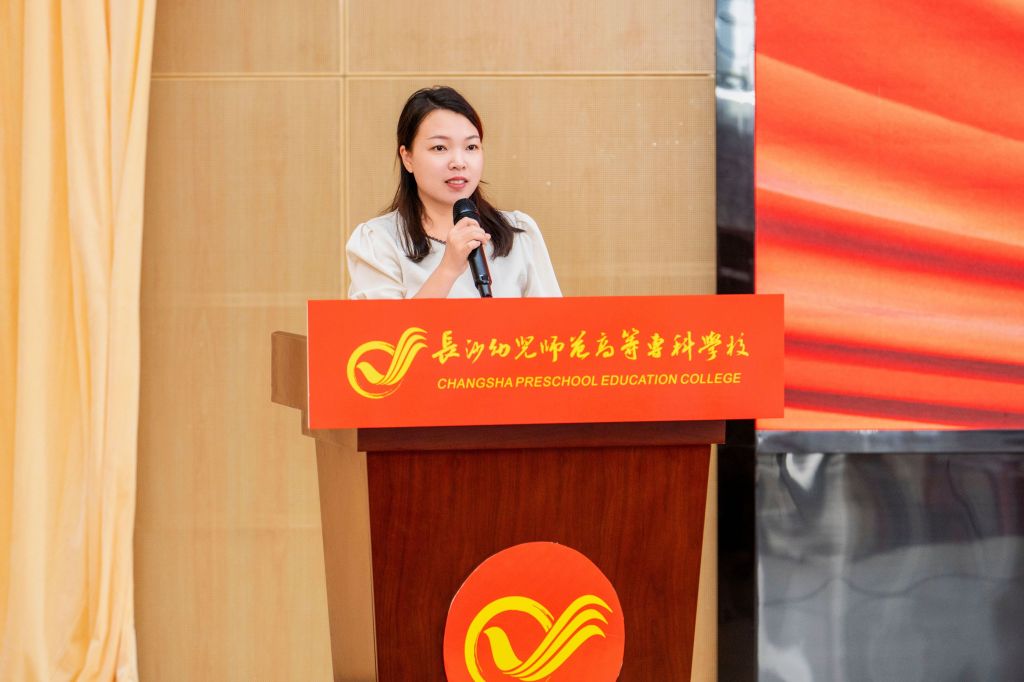 宁乡市玉潭街道兆基璟宸府幼儿园园长文江南代表全体学员表态:珍惜机会、用心用脑学习;转变身份,强化自我约束;加强沟通,树立良好形象。