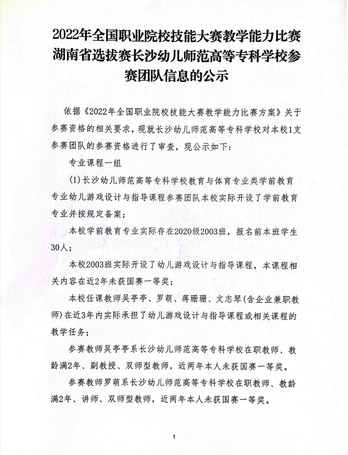 2022年全国职业院校技能大赛教学能力比赛湖南省选拔赛betway网站参赛团队信息的公示