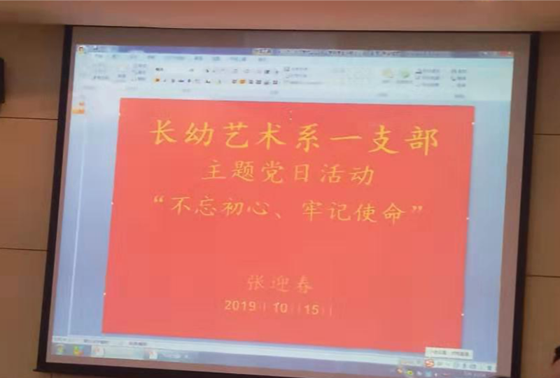 “按照学校主题教育活动的安排部署,今天一起和大家交流近期学习的心得和体会,共话学校发展,为合并升专添力量”,张迎春同志以《不忘初心,牢记使命》为切入点,结合艺术系在合并和创建过程中遇到的实际困难和发展目标,带领党员教师们一起进入的专题课堂。