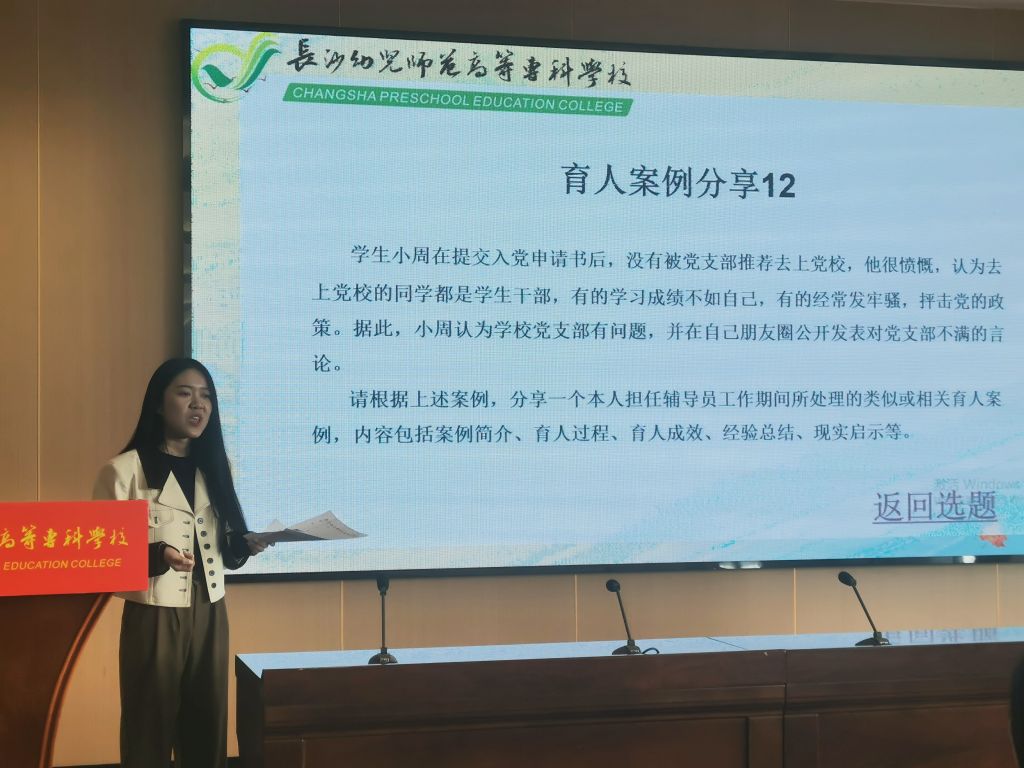 比赛现场精彩纷呈,在育人案例分享过程中,各位辅导员生动的展现了“离学生最近、最重要的人”如何以科学的育人理念、用最深的爱和耐心、用最恰当的方法传播思想、传递温暖,进而解决学生的实际困难与问题。该赛项结束后,湖南师范大学心理健康教育专家刘宓蜜评委进行了点评,她对参赛辅导员的表现表示充分肯定,并结合自身参赛和工作经验,先后从思政育人、心理健康、以赛促学的角度进行了细致的解析、交流和具体建议。