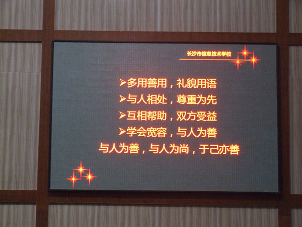 宿舍是学生休息和生活的主要场所。宿舍人际关系如何直接影响着中职生的身心健康和学习成绩。为了改善宿舍人际关系,构建和谐的宿舍人际氛围,2013年11月11日,我校师生齐聚汇美馆举行升旗仪式,仪式上1105班(小新星英语专班)学生曾莎同学发表主题为《与人为善,为邻为伴》国旗下讲话。