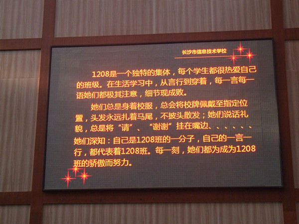 首先,陈爽爽通过讲述什么是细节,细节的意义何在,以及细节有哪些具体表现形式,说明细节不仅仅可以反映一个人的道德修养和素质水平的高低,而且也能体现一个社会的人文素质,代表一个国家的整体形象。接下来,陈爽爽列举了两个因为不注意细节导致求职失败的故事,这两个故事中的细节在他人看来可能微不足道,但是它对于某些职业而言却有着非常重要的意义,比如银行、报社等,我们时常能见到电视或其它网络媒体报道因为一个细小的疏忽而酿成大祸的事例,这使我们越来越懂得“千里之堤毁于蚁穴”的道理。紧接着,陈爽爽分享了在班主任雷老师的引导和带领下,全班同学从点滴做起,用现有的实际行动落实“细节管理”的具体过程,包括图书柜的陈放、拖把的悬挂、水杯的摆放、书箱的增设及桌面的布置等等。最后,陈爽爽回顾了在本学期开家长会的过程中同学们积极建言献策参与活动筹备的全过程,同时借用一个马掌钉的故事告诉大家,只要你踏实肯干,从大处着眼,从小处着手,成功一定离你不远。