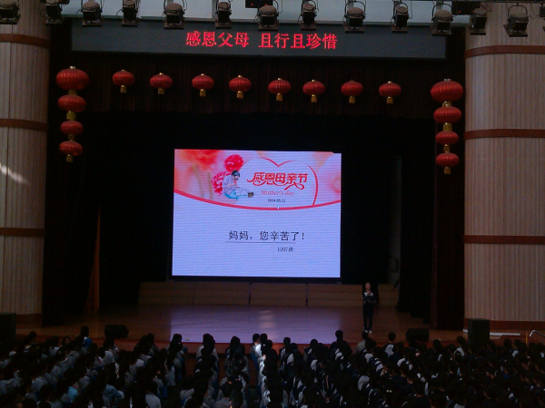 羊有跪乳之恩,鸦有反哺之情。世上最大的恩情莫过于父母的养育之恩,所以,父母是值得我们用生命去珍爱,用至诚的心去感激的。中国著名文学家郁达夫说过:一个不懂得感恩教育的民族是乌合之邦。那么,一个不懂得感恩父母的人是很难想象他能在将来拥有多大的成就。为了让学生懂得感恩父母,懂得珍惜身边人的爱,做一个有爱心、能够传递爱心的人。2014年5月12日,1207班王惦同学在升旗仪式上发表《感恩父母,且行且珍惜》国旗下讲话。