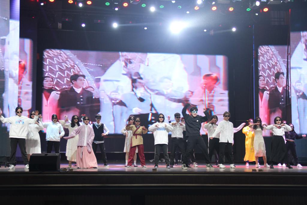 大会在清脆嘹亮的团歌中渐渐拉开帷幕,一段视频带着大家回顾了这一年来团学会各部门成员认真工作的身影。离任干部代表1807班彭芳婷和离任主席1803班段雨曦进行发言,表达了对学生会工作的热爱、对大家的不舍、对学校的感激。现任干部1916班梁艺琼发言,表示会谨遵校领导、老师及老干部们的教导,积极开展工作,为学生会的发展奉献自己的力量。随后是让人期待已久的节目表演。青志协、国旗班合作的情景剧串烧,80年代剧目《还珠格格》、《情深深雨濛濛》和现代偶像剧《一起来看流星雨》的经典桥段,以及精彩舞蹈环节《对你爱不完》等韩流歌曲,大声道出了对学长学姐的不舍之情。新媒体带来的舞蹈solo和宿管部的独唱饶舌歌曲《hey kong》别具风味,纪检部的情景剧《招新》和广播台的诗朗诵神采飞扬,精彩绝伦的节目收获了雷鸣般的掌声。节目过后,是素质拓展游戏——“群龙取水”、“爱的魔力转圈圈”,各部门积极参与,现场十分活跃,每个同学脸上都洋溢着幸福的微笑,随之而来的是煽情环节——“我想对你说”,各部门代表满怀真情地向学长学姐送上美好祝福,并感谢他们这一年给予的陪伴与帮助。