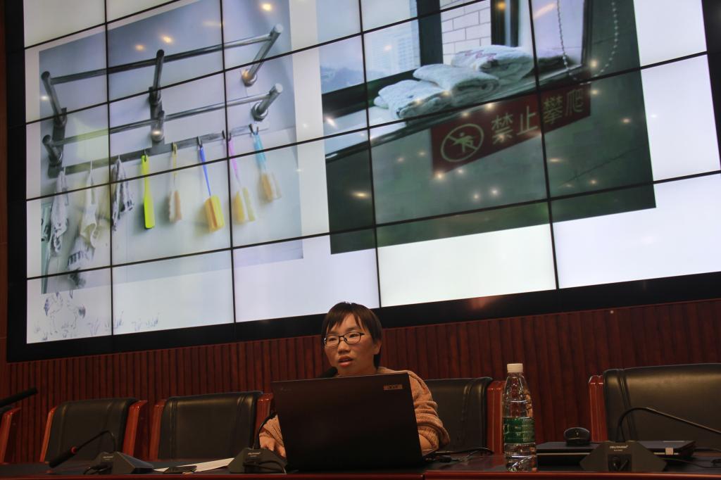 在座谈会上,邹雯辉传达了学校关于宿舍文明创建的工作安排,解答了同学们的疑惑建议,督促同学们养成良好的卫生整理习惯和严谨细致的生活作风,并再次强调了宿舍重点规章制度,例如严禁留宿外人,严禁不假外宿,严禁把排插放在床上,辅导猫查寝打卡必须规范等。随后,她从宿舍卫生管理、免检寝室评比、“欢迎回家”劳动教育等方面和同学们进行交流,并针对同学们提出的问题和困难给出解决办法。