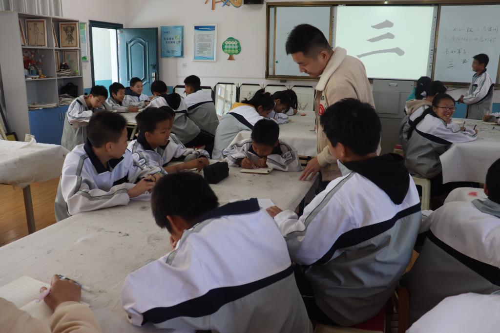 李剑波带来的是《范字解析》书法课,旨在教授学生观察范字的方法,有效提升他们的观察能力与表现能力。课堂以“书如算子则不是字”为主线贯穿,重点分析了“三”、“州”、“走”“吕”等字,讲授了每个字的结构要点,提出了解析范字的基本步骤与方法,深得学生认可与喜欢。