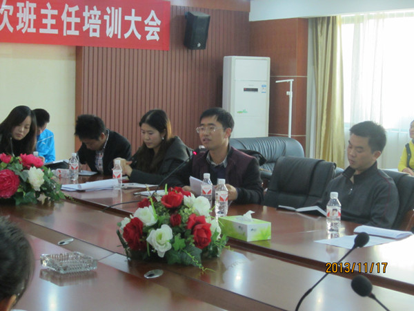 冰心曾经说过:“教师的现在,就是学生的将来”,班主任工作的质量关系着未来人才的质量。为了强化班级管理,提高班主任的管理艺术水平,增强班级工作经验交流,2013年11月17日,我校在道德楼广益厅召开了今年下半年第一次班主任座谈会,出席本次座谈会的有,校长郭正良,校长助理兼学生科科长周文华,校团委副书记兼学生科副科长周曦,学生科副科长宋黎黎,全体班主任及学生科所有老师。本次座谈会由周曦书记主持。