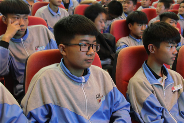 最后,王科长勉励同学们:做好人生长远规划,学会适应学习、生活环境。期待同学们明事理、长智慧、会感恩、努力争做一个知行合一的中职生。本次讲座持续了两个小时,全体男同学参加,同学们都认真听讲,达到预期的效果。