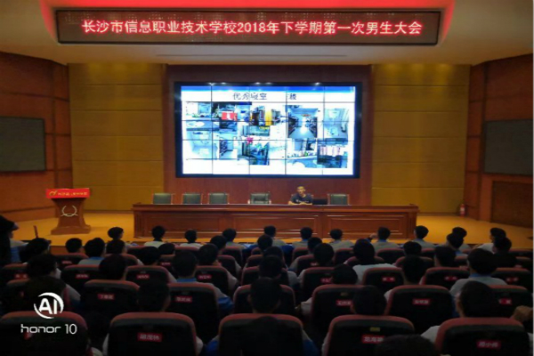 为了提高我校男生的安全防范意识和纪律意识,加强寝室内务和卫生管理,2018年10月7日晚,长沙市信息职业技术学校全体男生在汇智厅参加2018年下学期第一次男生大会,全体男生班班主任及全体男生与会,大会上,学生科王潇翔老师以及学生科副科长彭亮相继发言。