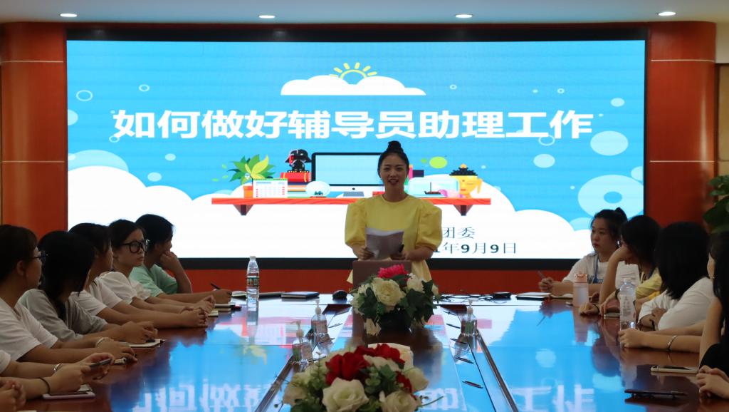 首先吴思晓强调了学校对此次迎新工作的高度重视,同时为帮助辅导员助理尽快熟悉工作内容、掌握工作技巧、提高思想政治素质、提升工作能力,此次邀请到了刘燕老师对全体辅导员助理进行培训。刘燕在培训中提出了辅导员助理的八项职责,她强调到要想要带好一个班,就要发掘学生的长处,培养德才兼备的班干部,重点对开学工作进行部署和细节的疏导,要求班级助理们不仅要关注学生的生活和学习,而且要重视学生的心理健康状态,做好学生的心理工作,沉着冷静地去应对一切突发事件。最后,希望各位同学在工作中不断提高自身的管理能力、做事能力,处世能力,以身作则,一言一行中传播正能量,在工作中展现人格魅力,让同学们信任、信服。