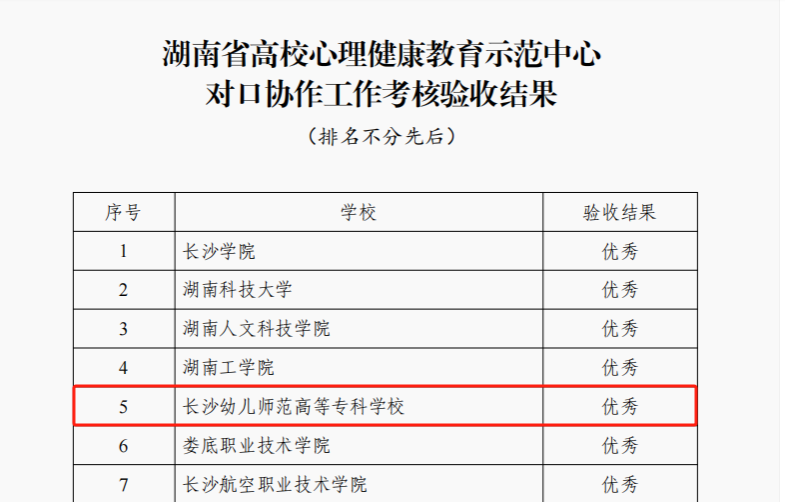 近日,湖南省教育厅发布通知,根据《关于申报湖南省高校心理健康教育示范中心项目的通知》(湘教通〔2021〕271 号)和《关于公布湖南省高校心理健康教育示范中心项目立项名单及开展对口协作工作的通知》要求,湖南省教育厅组织专家对20所高校心理健康教育示范中心项目进行了中期检查,对 53所高校心理健康教育示范中心对口协作工作进行了考核验收。