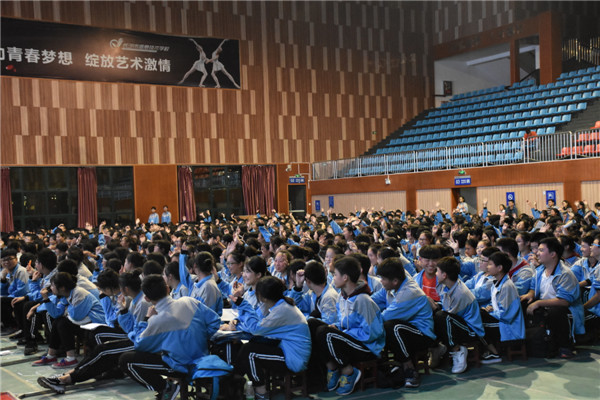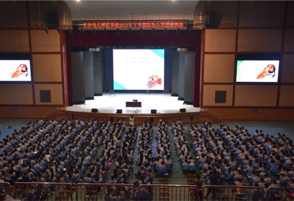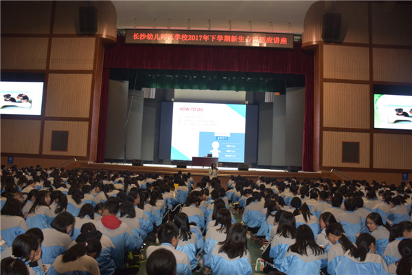 为了协助高一新生更快适应中职生活,完成从初中生到高中生的角色转变,更好地开展学习、进行人际交往、寻求个人发展,2017年10月26日晚上18:40,2017年下学期新生心理适应讲座在汇美馆隆重举行,参加本次心理讲座的有17级全体新生、学生科副科长彭亮,学生科戴申林老师及各班晚值班老师,本次讲座由心理发展指导中心朱鸿博老师主讲。