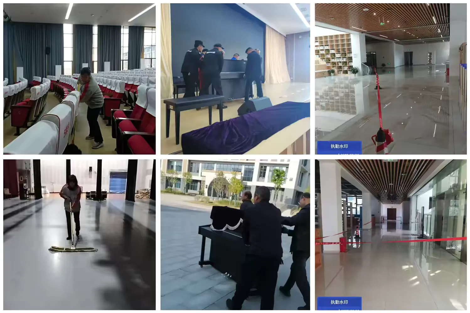 3月21-24日,2025年“楚怡杯”职业技能竞赛中职、高职组声乐、器乐赛项在学校举办,来自全省高职院校的参赛选手聚集,物业团队全面部署,提前做好赛点水电设施检修排故,赛点卫生大扫除等工作,圆满完成比赛期间的各项物业服务工作。