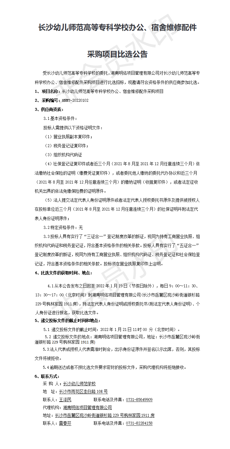 betway网站办公、宿舍维修配件采购项目比选公告