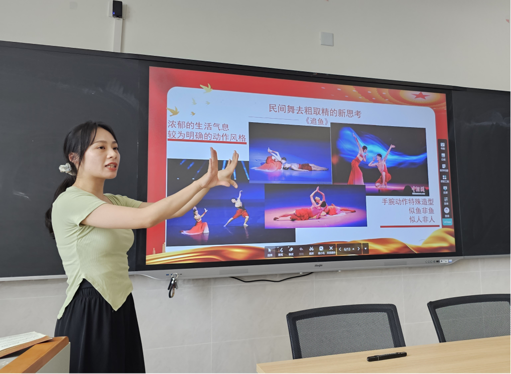 为进一步贯彻习近平新时代中国特色社会主义思想,弘扬伟大建党精神赓续党的红色血脉,引导艺术学院全体党员将理论学习转化为指导教育教学工作的强大动力。4月20日下午,艺术学院全体党员在艺馨楼开展“从舞蹈中看党史”主题党日活动。艺术学院第二党支部书记何婷作为主讲人,将舞蹈作品的创作发展与中国近现代史中的改革开放精神相结合,从舞蹈中看党史,讲述改革开放时期的舞蹈发展历史。活动由艺术学院党总支书记伍莉主持。