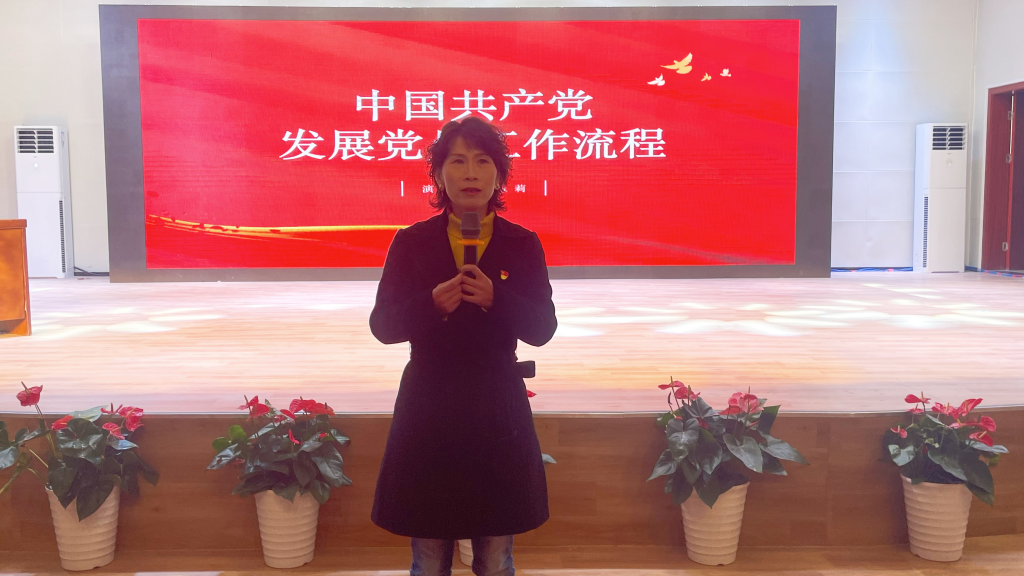 随后在规范党员发展流程专题讲解中,她以 “申请加入党组织”“确定入党积极分子和培养教育”“确定发展对象和考察”“接收预备党员”“预备党员的教育考察和转正” 五个阶段为主线,系统梳理了 30 余个关键环节的具体要求。她强调,党员发展工作是党的建设的 “源头工程”,需严格落实《中国共产党发展党员工作细则》,确保每个阶段材料完整、程序合规、考察全面。针对艺术专业学生特点,伍莉书记特别指出,在考察过程中将重点关注学生的艺术创作导向、社会服务参与度及思想动态稳定性。