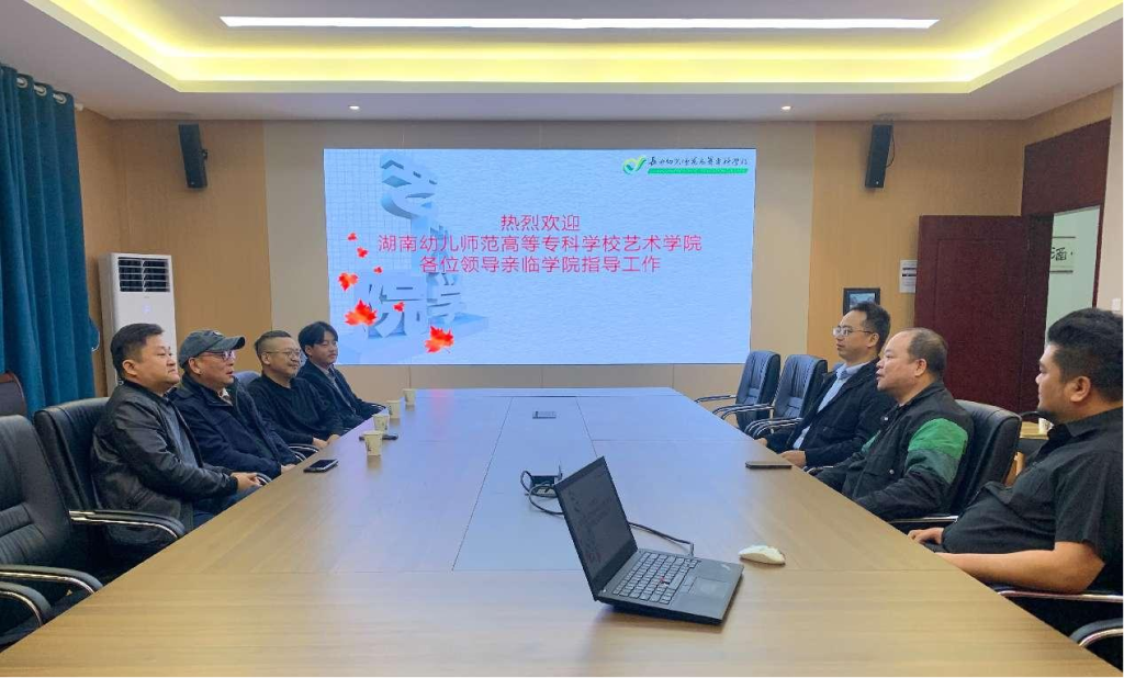 邓登明对湖南幼儿师范高等专科学校各位领导的来访表示热烈欢迎,并介绍了学校整体专业布局、专业发展等情况。李伟强从专业结构、专业建设、实训室建设、校企合作等方面对艺术学院办学情况进行介绍,希望两校持续交流互访,深化优质资源共享、实现优势互补、发展共进,一同面对未来职业教育发展态势,为幼儿师范类院校艺术学院的发展奉献力量。