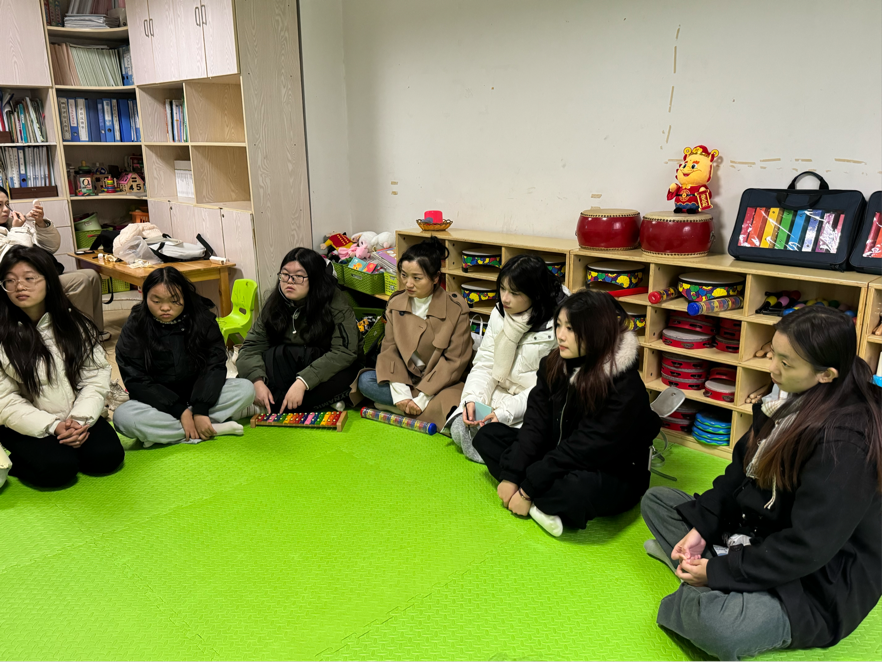 上午,学生们观摩了一场特殊儿童音乐治疗活动,直观地感受到音乐是如何作为一种治疗手段,帮助特殊儿童在情感表达、社交互动以及身体协调等方面取得进步,对音乐治疗的实际操作有了初步的感性认识。