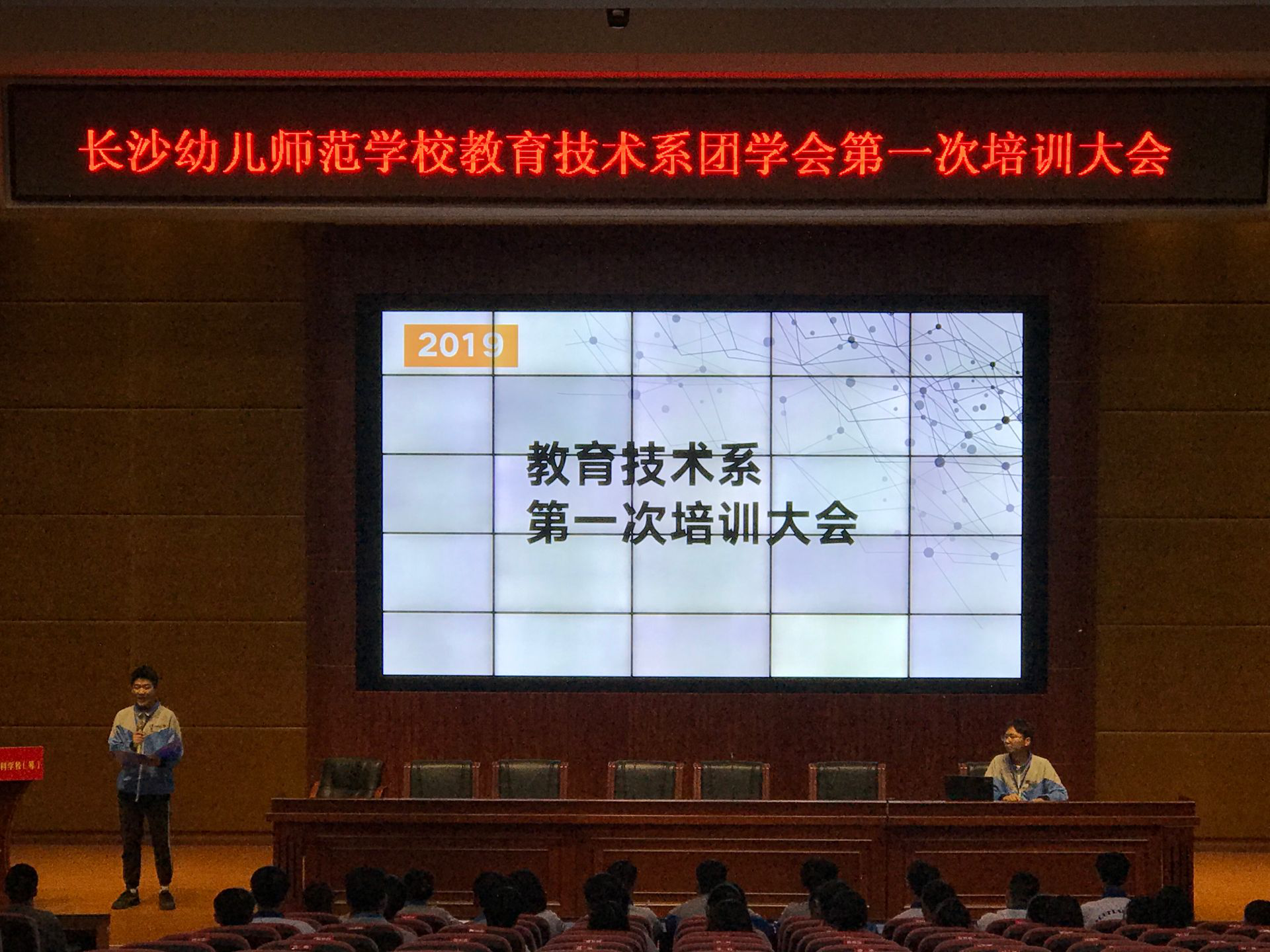 沟通,拉近心与心的距离。为提高我系团委学生会的凝聚力,进一步加强学生干部队伍建设, 提升学生干事的综合素质和工作能力,促进全体学生会成员在思想意识上进一步明确自身职责,帮助学生会成员外塑形象,内强素质。我系于2019年11月11日第一节晚自习在学校汇智厅召开了系部团学会第一次培训大会。参加会议的有系部主任吴佳蒂主任、王潇翔老师、陈雯婧老师以及系部团委学生会全体成员。