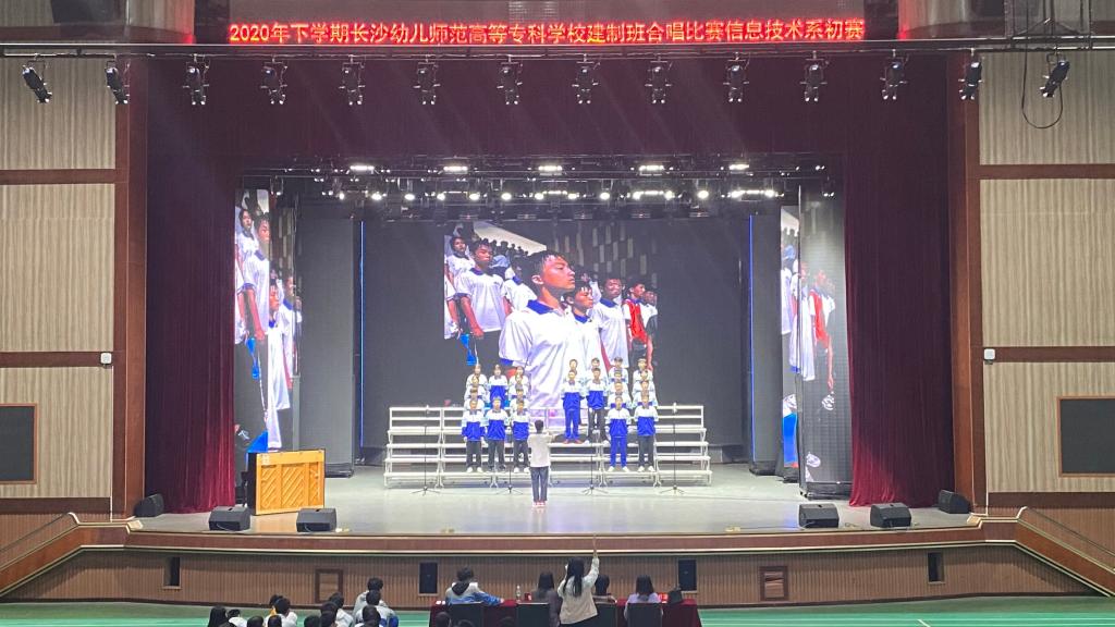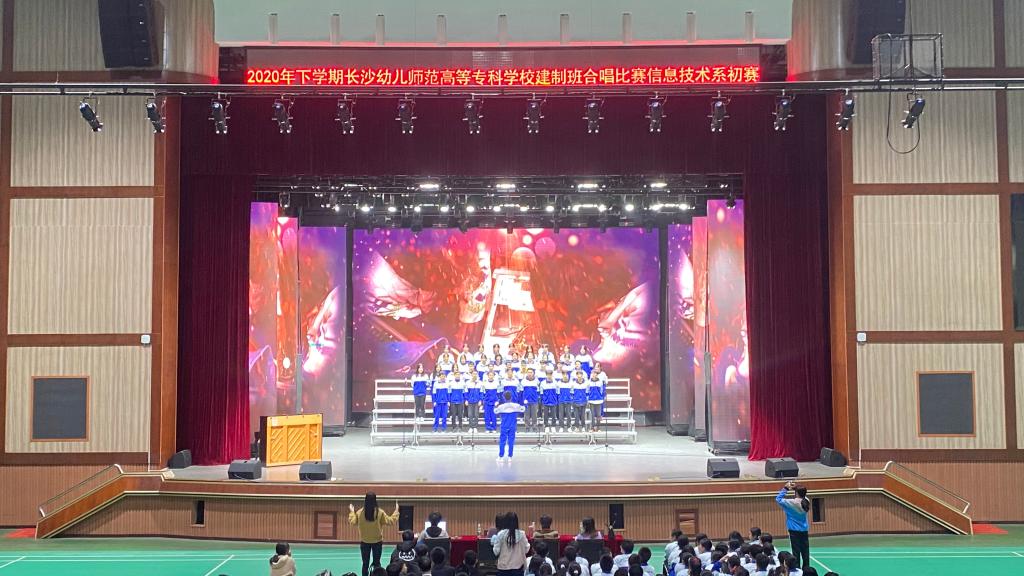 首先,由主持人宣布比赛开始,紧接着四个班级按抽签顺序1919、1918、2007、2008依次进行合唱表演,由评委老师现场给出评分。汇美馆里学生们着装整齐、精神饱满、热情高涨、宏亮美妙的歌声,唱响了学生们青春热血。最后,由2007班胜利出,将代表信息技术系继续参加学校的建制班合唱比赛。