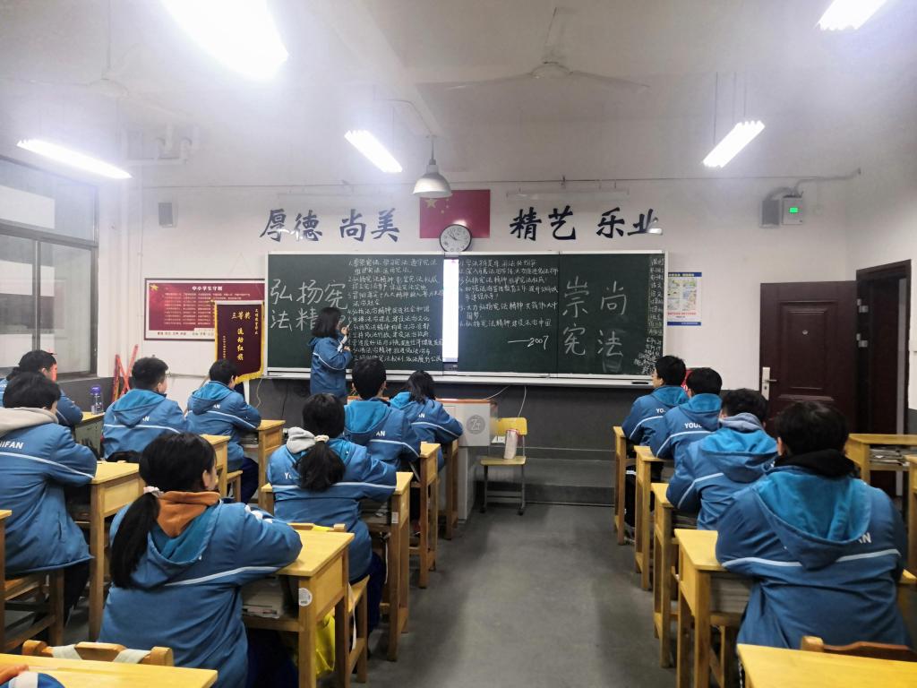 例如:1815班班主任利用晚自习时间对学生进行宪法宣传,学法氛围浓厚;1813、1814、1918、1919、2007、2008班在早自习时间通过新颖的形式、详实准确地解读,加大学习法律宣传力度,帮助同学们将法律知识入脑入心。