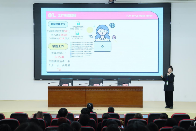 为进一步加强学校团委学生会建设,提高学生干部队伍的整体素质,总结工作情况,吸取过往经验,3月21日下午14:00,我校团委在业馨楼报告厅召开2023年下学期团学会部门工作述职大会。学校党委副书记兼纪委书记李慧中、学生工作与安全保卫处副处长邹雯辉出席本次大会,团委专干周洪杰、校团委全体学生干部参加。大会由邹雯辉主持。