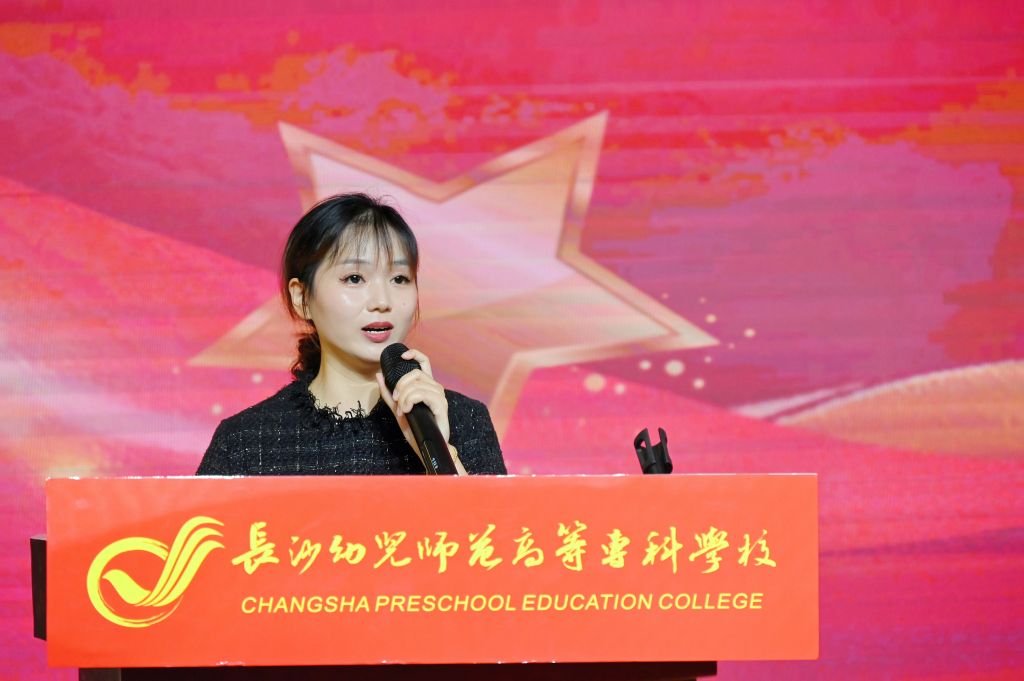长沙市教育系统青年岗位能手李敏、长沙市教育系统青年文明号学前教育学院辅导员工作室创建集体代表罗萌代表长沙幼师高专全体青年教师发言,她们从自身成长经历出发,与全体青年教师分享经验、共同交流,望与大家共勉。