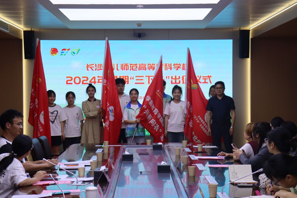 为推动广大学子扎根祖国大地,在社会课堂中受教育、长才干、做贡献,6月28日下午,我校2024年大学生暑期“三下乡”出征仪式在道馨楼420举行。学校党委委员、副校长周文华出席本次仪式,学保处副处长邹雯辉、各学院副院长、各社会实践队指导教师及成员参加仪式。会议由邹雯辉主持。