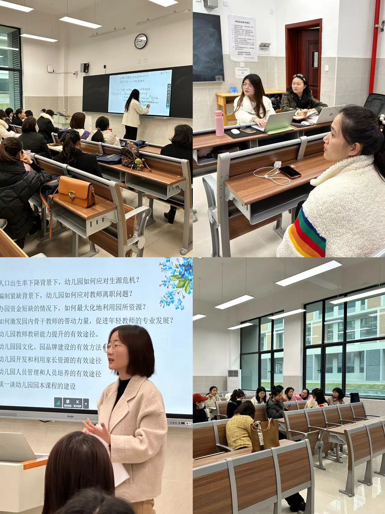 为了实现“幼有所育”向“幼有优育”转变,切实解决长沙地区学前教育发展中的突出问题,提升幼儿园办园的质量,2023年3月21日下午,长沙市幼儿园园长能力提升班主题研讨会分组在德馨楼118至125教室召开。张鲁明、刘湘艺、刘汝婷、张思颖、李成蹊、鲁双、刘迪迪等教师分别参与研讨。