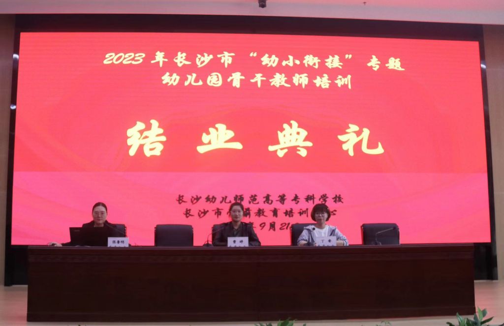 经过三天紧张而充实的培训学习,2023年长沙市“幼小衔接”专题骨干教师培训班圆满结业。21日下午,培训班在betway网站图书馆报告厅召开结业典礼,长沙幼师高专继续教育与国际交流学院教师张鲁明、曹婷、丁香出席结业典礼,典礼由张鲁明主持。