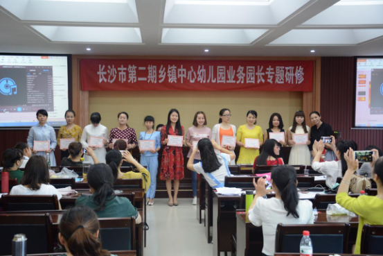 5月13日上午11点,长沙市第二期乡镇中心幼儿园业务园长专题研修结业典礼在湖南省宁乡师范学校宁觉厅举行。