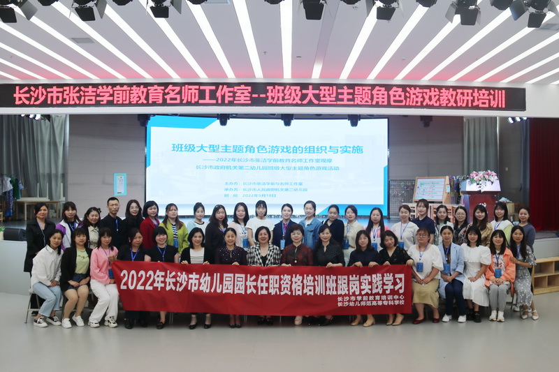 长沙市人民政府机关第二幼儿园和长沙市教育局幼儿园八方园的跟岗学员正在参与“长沙市张洁学前教育名师工作室——班级大型主题角色游戏教研培训”,陈浩军园长的精心组织、张洁园长的专业引领以及游戏现场的观摩、研讨,使学员们对主题角色游戏的实施和专题教研的开展均有了全新的认识。