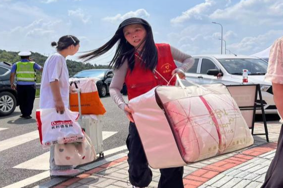 大家眼里有光、脚下生风,虽然酷暑难耐,但还是坚持尽心尽力为新生做好服务工作。在了解到学生宿舍需要志愿服务后,罗叶琦、龙海艳等同志立马前往帮忙,大家提行李、拖箱子,送学生上楼,解决学生的各类问题。
