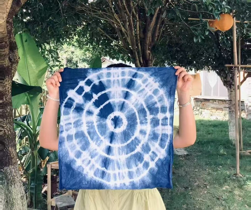蓝印花布:扎结、染色、晾晒,蓝白纹路里藏着孩子们对“社会支持”的理解。他们交换扎染工具、协作完成作品,在布料的交融中懂得共生与合作。