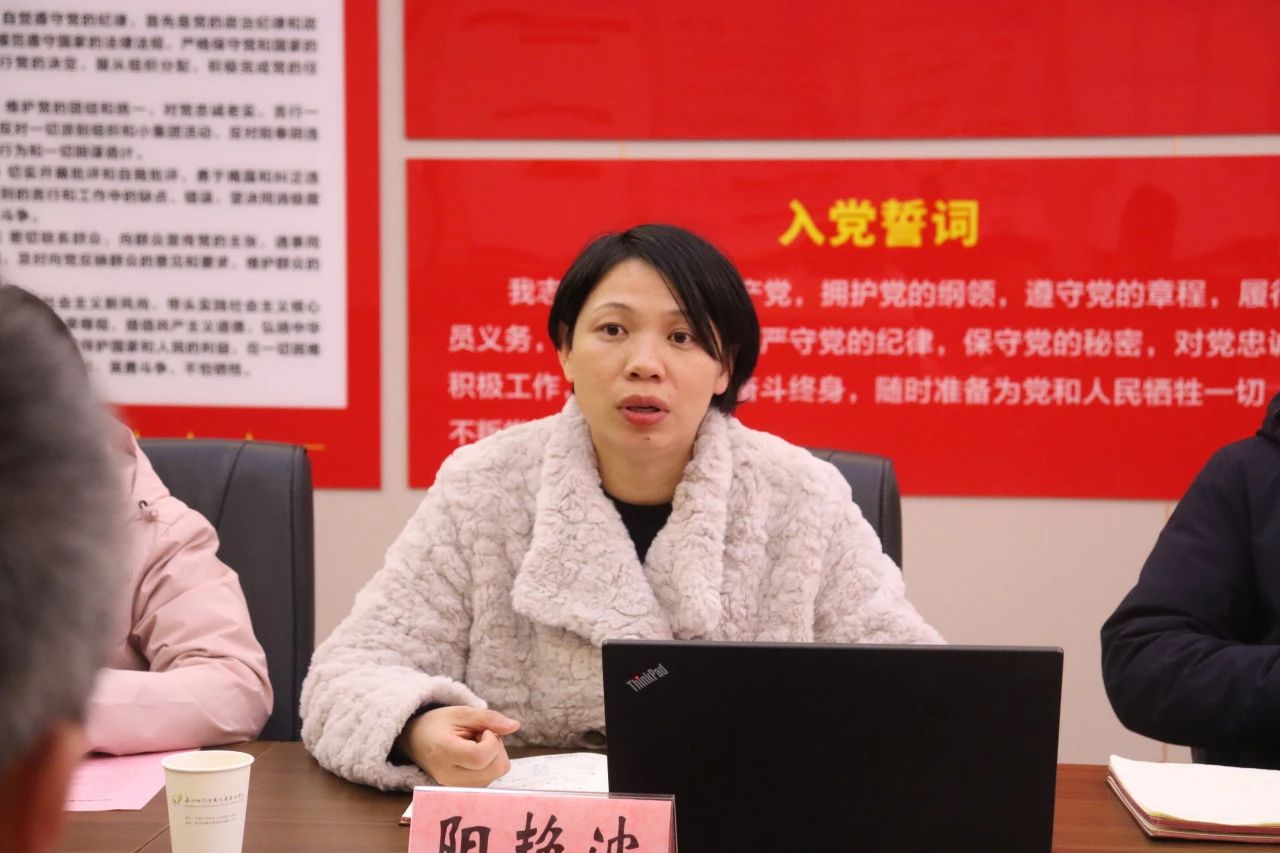 最后,阳艳波就学院的办学历史、办学定位、办学特色等相关情况进行了总结。她表示我院的教学方案主要从抓标准建设和实行“教养结合”特色教学两方面展开,通过了解市场需求,制定人培,再与用人单位多方沟通交流,汲取省教科院等行业大咖意见,修订人培并规范内部管理。