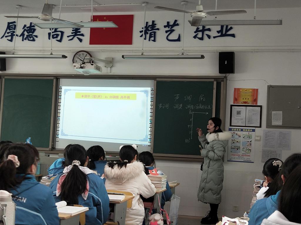 12月25日,陈婷老师执教的《普通话声调》一课,围绕四类声调“阴平、阳平、上声、去声”进行讲解。陈婷老师综合素质高,语音甜美,亲和力强。课堂教学环节环环相扣,教学重点突出,朗读方式多种多样,教学内容多元化,让学生进行了充分的口语练习。