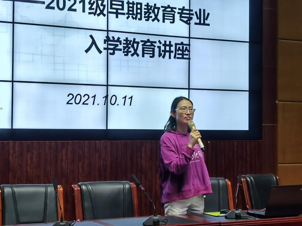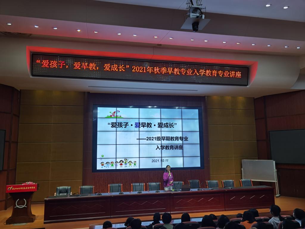 10月11日晚,学前教育系开展2021级新生入学教育,600多个新鲜的血液融入学前教育系。其中,也包括了95名早教专业的新生,同学们风华正茂,由此开启梦想的新篇章。在入学教育后,2021年秋季早期教育专业入学教育讲座“爱孩子 · 爱早教 · 爱成长”在汇智厅举行。早期教育专业讲座由早教专业负责人林静老师主持,聆听讲座的还有20级五年制大专80位同学,再次重温就读早教专业的初心。