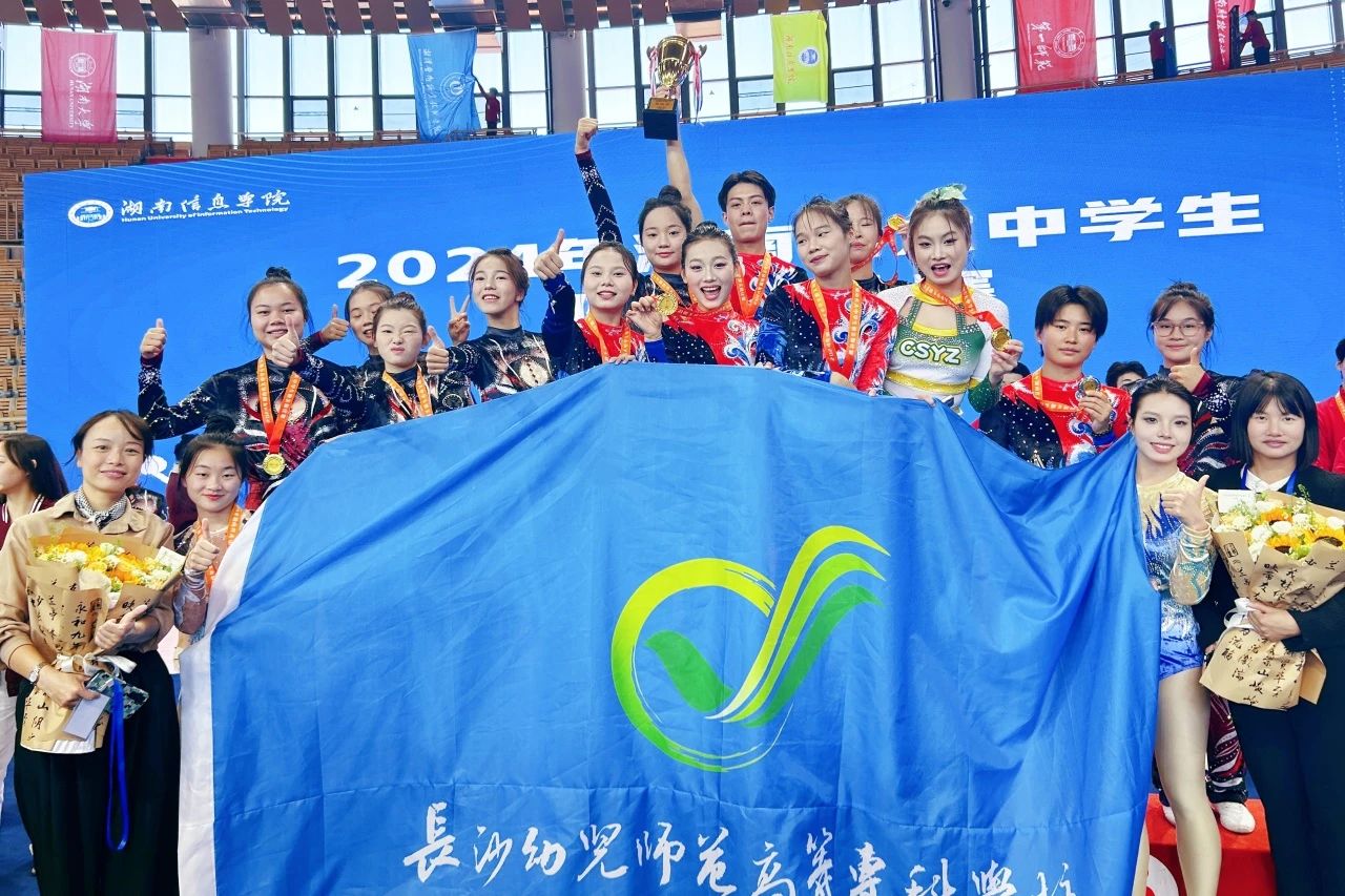2024年湖南省大学生健美操、啦啦操比赛于10月31日落幕,作为首次参赛的院校,长沙幼师高专健美操队共摘得三金两银,以及第四、五、七名各一项,取得团体总分第四名的好成绩。