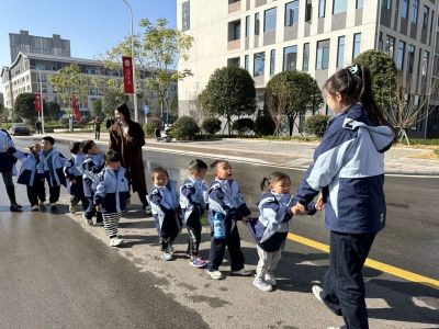 第一次踏出幼儿园大门集体出游活动,走进大学校园,他们都兴奋极了!小朋友们排着整齐的队伍出发啦!