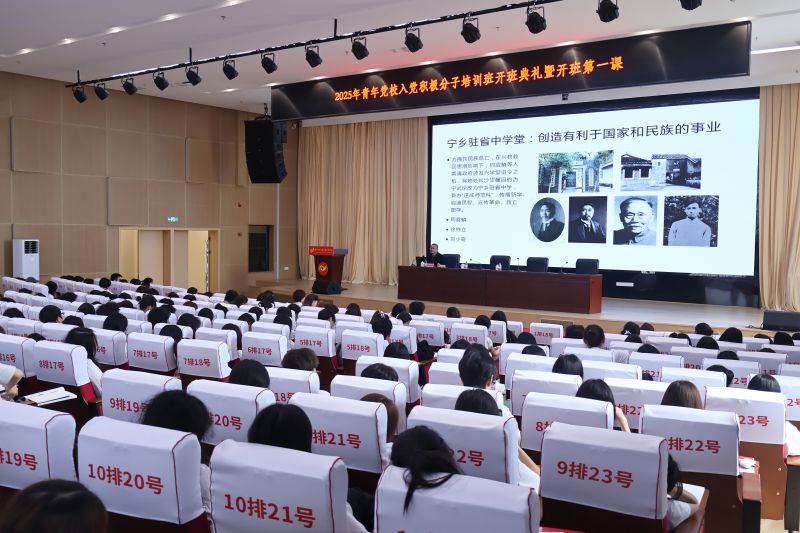 典礼结束后,李慧中以“赓续宁觉 强国有我”为主题,为培训班讲授了第一堂党课。他围绕学校120年历史脉络,生动讲述了学校不同历史阶段的发展历程。他以学校标志性建筑宁觉广场的火炬为切入点,重点介绍了“宁觉之光”火炬的设计意图和象征意义,带领学员们进一步了解了学校的红色历史。从周震麟先生的“创造有利于国家和民族的事业”的办学初衷,到“甲师”师生矢志报国、舍生取义的时代觉醒,从扎实办好中等师范教育,到顺应时代变化培养阳光自信职业人,学员们深刻感悟到学校百余年来矢志教育报国、紧跟中国共产党的脚步干事创业、奋楫笃行的初心和决心,也从一代代长幼人身上领悟到责任与担当。李慧中勉励全体入党积极分子,要领悟好学校红色文化的精神内涵,传承好红色基因,让长幼的精神图腾“宁觉之光”在新时代绽放更耀眼光芒。