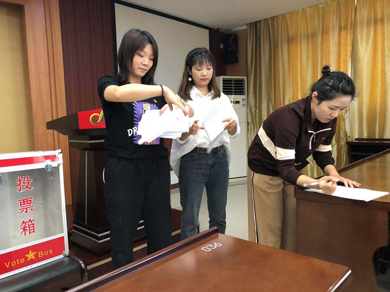 此次大会由学前一支部换届选举小组主持。首先,换届选举小组组长闵捷同志宣布本次大会应到正式党员18人,实到正式党员18人,符合换届选举的参会人数规定;接着,全体参会人员举手表决通过《长沙幼儿师范学校2019年党支部换届选举工作方案》;随后,选举小组就学校党委审批通过的四名候选人的基本情况向大家一一介绍;最后,全体党员进行无记名投票,经过监票人余磊同志、计票人田怡姿同志、唱票人丰丹同志的监督和统计,闵捷、张鲁明、蒋珊珊以满票当选为下一届支部委员。