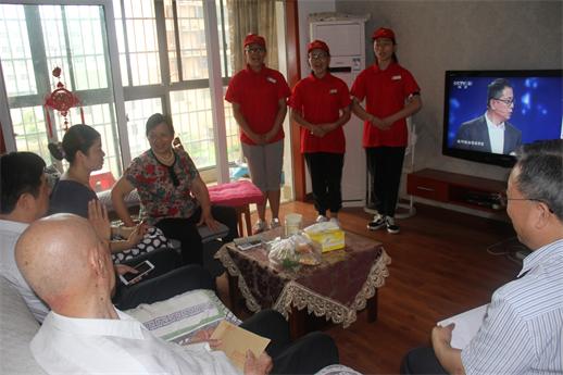 细雨斜织,宛如初春。张国斌书记一行首先来到离退休老党员黄美伦家中,与年近九旬的黄老进行亲切交谈,并送上节日的祝福。同行的志愿者们,为老党员黄爷爷和老伴真情地献上一首革命红歌《映山红》,乐得黄嗲嗲老两口合不拢嘴。接着张书记一行踏着泥泞小路来到还住在工棚的老党员康象兴家中,得知康老患冠心病、高血压等疾病,常年要吃药打针,张书记、李书记关切地询问康老的身体状况,并送上慰问金。志愿者们当场就在康爷爷家中忙开了,扫地的扫地,收拾桌子的收拾桌子,用实际行动帮助行动不便的老党员。离开时与老人约定,有任何需要,可以随时与校团委志愿者服务者联系,她们可以上门做些力所能及的家务。