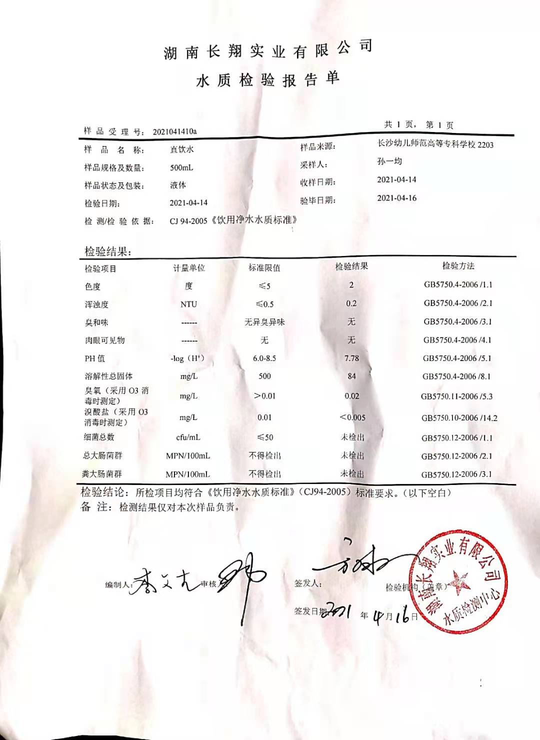 2021年4月30日直饮水主机系统滤材清洗、更换服务情况公示