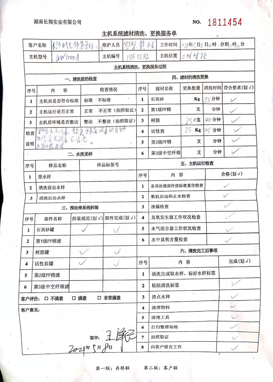 2021年5月8日直饮水主机系统滤材清洗、更换服务情况公示