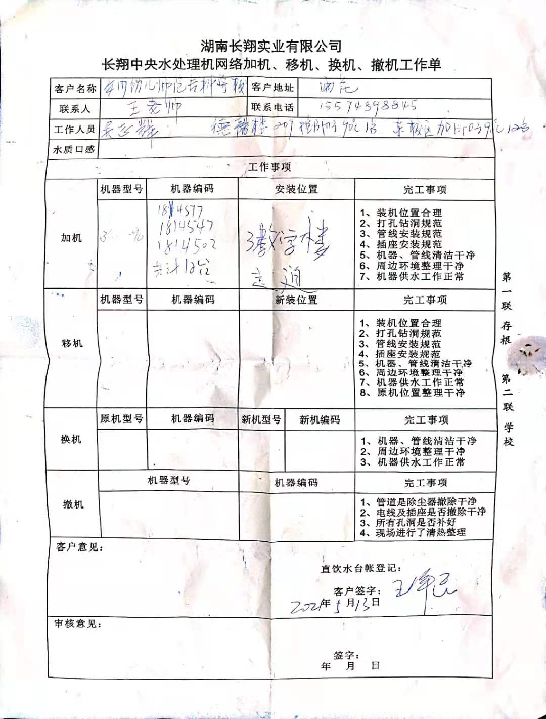 2021年5月信息技术系宏美楼直饮水分机加机工作完成情况公示
