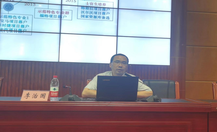 培训会上,周文华首先对李治国教授表示热烈欢迎,他指出,“他山之石可以攻玉”,学习湖南汽车工程职业学院的优秀宝贵经验,可以帮助学校找准方向、明确定位,希望全体教育教学管理人员认真聆听、虚心学习。
