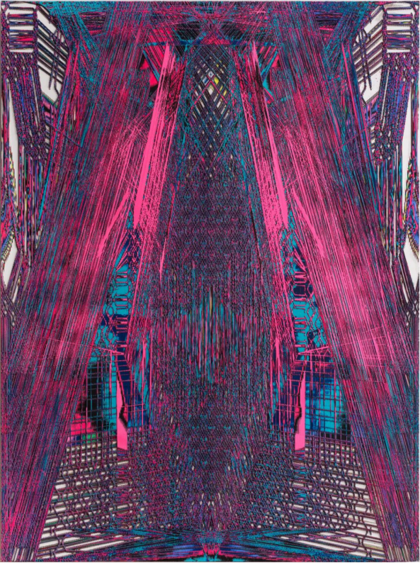艺术家欧劲是一位情感节制,外表冷静,内心自由激昂的艺术家。他的作品即谈不上是完全抽象,也没有明确的现实指向,因而产生一种疏离感和自我饱和感。在创作中,他从未对某些图像只稍作修改,而是在生产过程中截取“碎片”“信息”,并将感官和意义留给观众构建。他擅⻓使⽤机器在叠层的丙烯石膏平面上作画,并借助电脑程序的科幻之力,向视觉形式发出走向虚拟的指令,创造出恍如隔世的、缜密的画⾯。它们阐明了材料的被使用特性,同时也展现了一种“集体的美”和“综合的力量”。