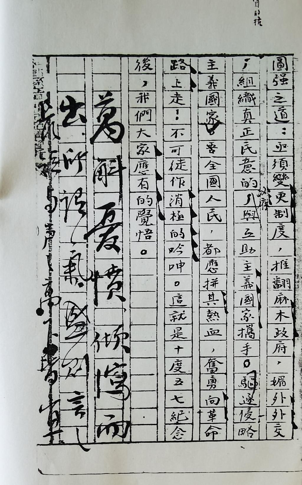 对周凤阳的文章,谢觉哉不但在字词句法方面一一批改,还用尾批的形式予以启迪。《五七国耻的回溯》一文尾批为,“万斛爱愤倾泄而出,所语气盛,则言之长短与声之高下皆宜”。谢觉哉对学生关心国家大事、担忧民族命运的爱国热情加以肯定与赞美,对学生见解浅薄处、阐述不清处予以引导和指导。