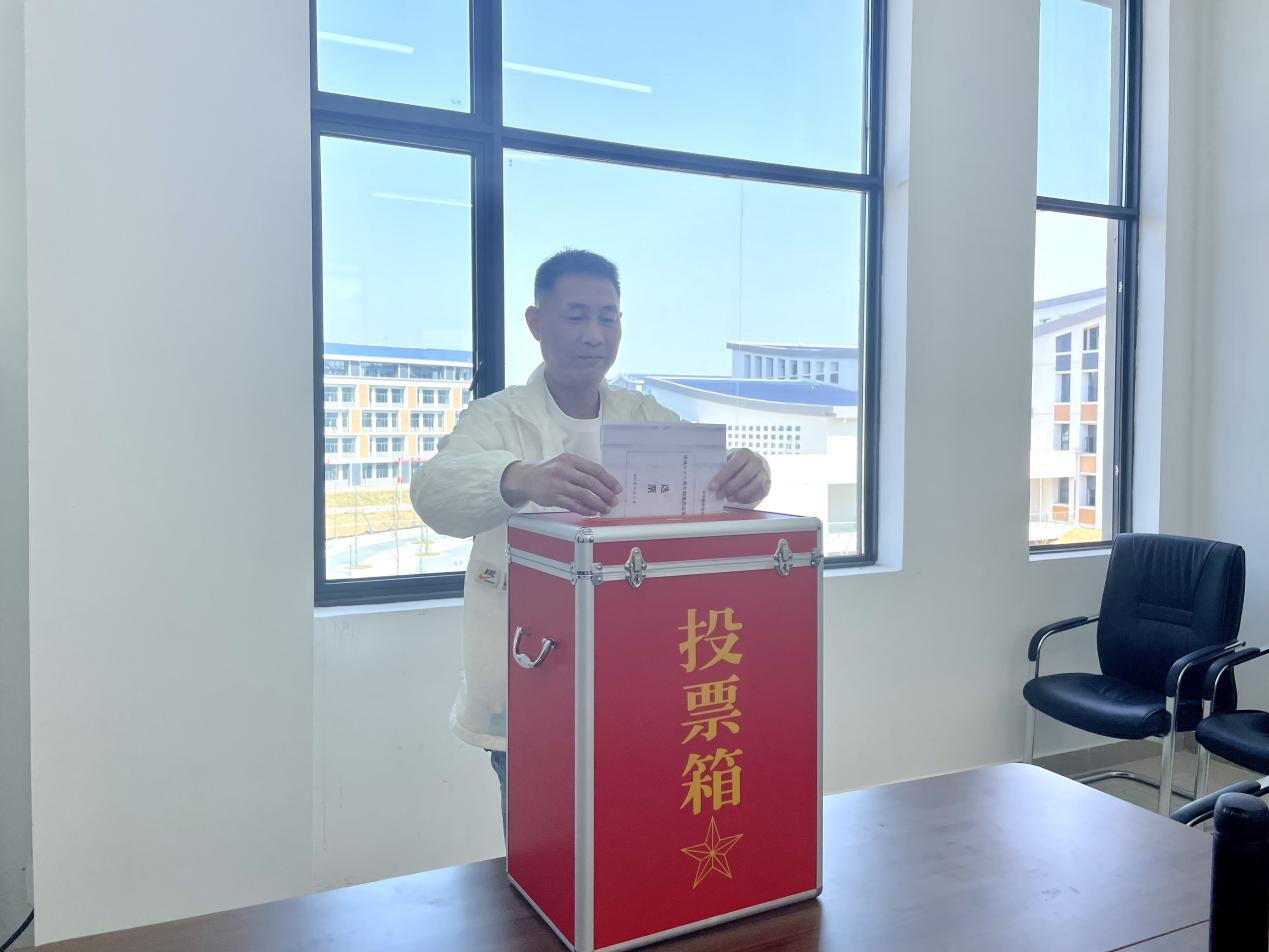 将到场党员选票收集齐后,由李科同志宣读信息技术学院党总支候选人选票结果报告单。 最终根据《选举办法》和计票结果,李科同志当选信息技术学院党总支书记,张德健同志与胡亚南同志当选支部委员。