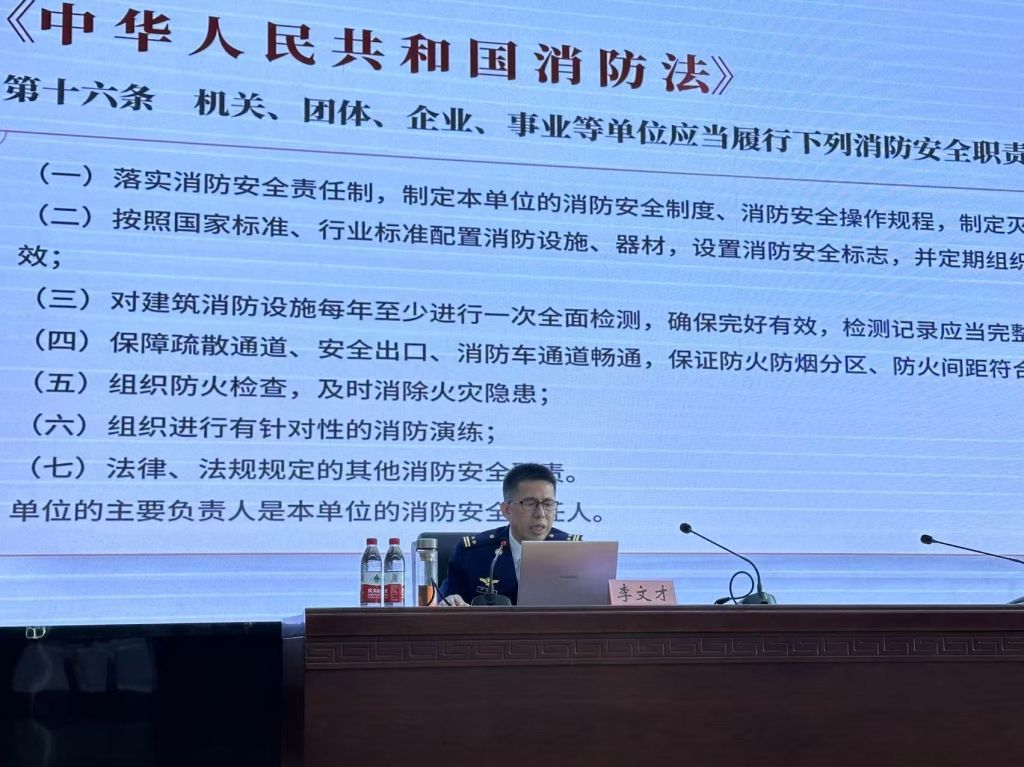 在讲座上,朱文才通过图文并茂、新闻报道、事故分析、现场说法的形式,播放并讲解了近年发生的多起重大火灾事故的实例视频。针对学校的消防安全实际情况,结合工作和生活中用电、用气、用火的知识,介绍了事故发生的原因,可能造成的危害情况,详细讲解了发生火灾后的自防、自救、逃生技能。